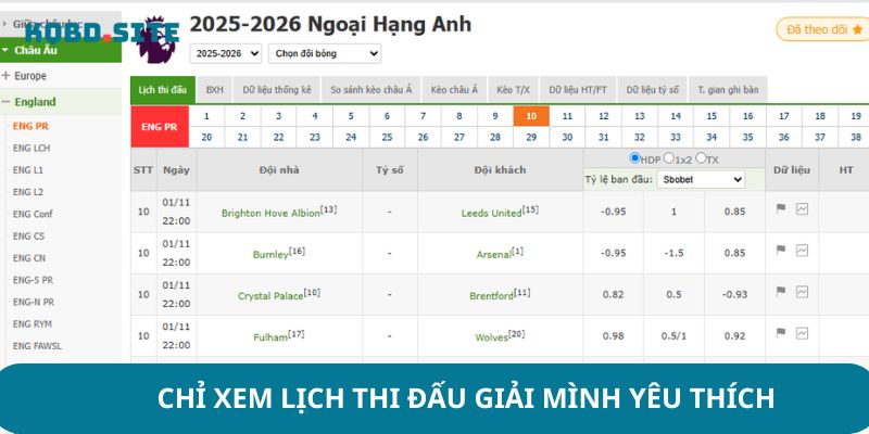 - Lựa chọn đúng giải đấu quan tâm: Các website bóng đá thường cung cấp lịch thi đấu đa dạng cho nhiều giải, do đó bạn cần kiểm tra kỹ và chọn đúng sự kiện mà bạn mong muốn theo dõi để tránh nhầm lẫn.